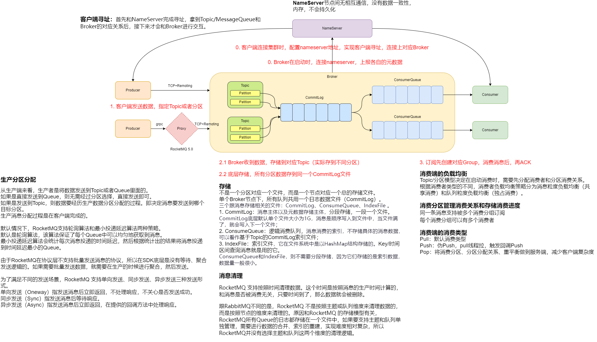 MQ架构 发表于 2025/01/07 更新于 2026/03/29 作者 ManShouyuan 本文总阅读量次, 1 分钟阅读 MQ架构 文章内容 MQ架构 MQ基本模块一个消息队列至少要有通信协议、网络、存储、生产者、消费者最基础的5个模块,不同的MQ架构就是对这5个模块的选型设计。 消息队列组成部分简图消息队列中存储的数据分为两大类,分别是元数据和消息数据。元数据是集群维度的资源数据,包括Topic、Group、User、ACL、Config;消息数据是客户端写入的用户业务数据。RocketMQ RocketMQKafka KafkaRabbitMQ RabbitMQ 后端, MQ 后端 MQ 本文由作者按照 CC BY 4.0 进行授权 分享