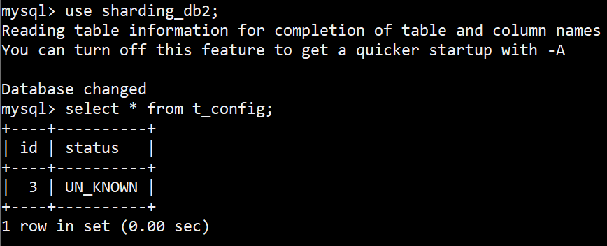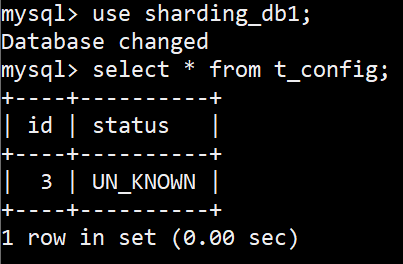 [main] INFO ShardingSphere-SQL - Actual SQL: ds1 ::: insert into t_config (status, id) values (?, ?) ::: [UN_KNOWN, 3]