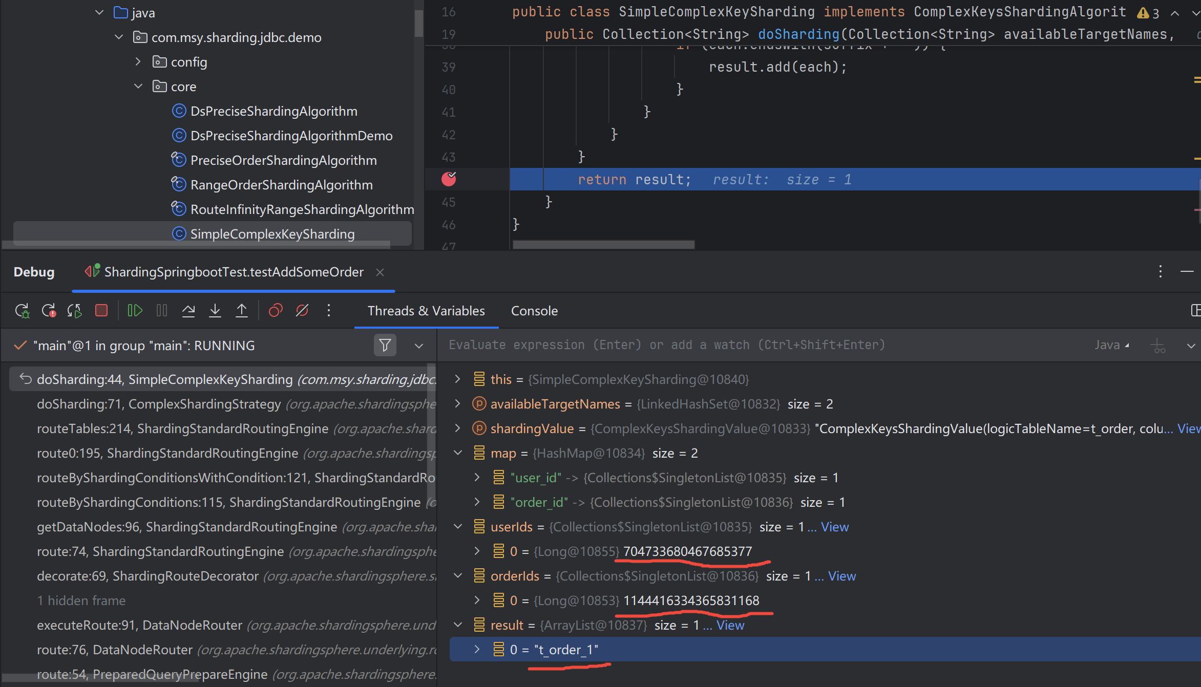 [main] INFO ShardingSphere-SQL - Actual SQL: ds1 ::: select order_id, status, user_id from t_order_1 where order_id=? ::: [1144669387081887749]