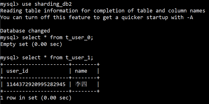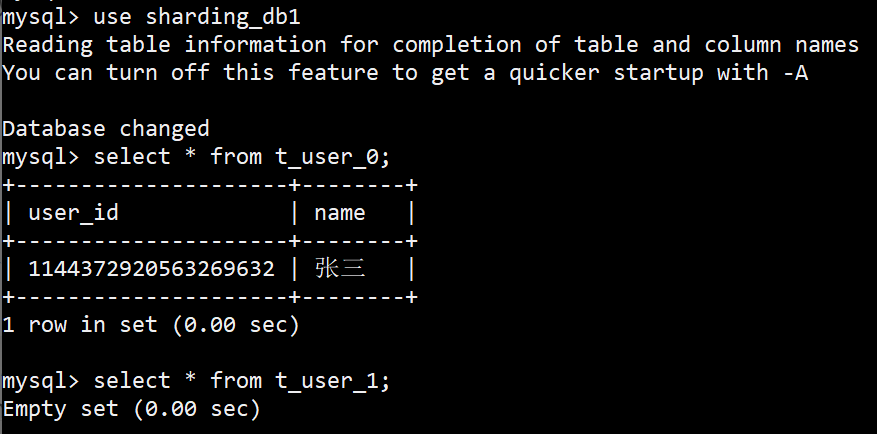 通过路由算法后,具体映射到的某一个表,就是真实的物理表。即上个示例中的t_user_0和t_user_1。