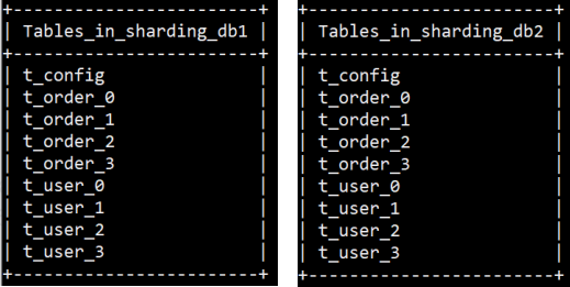 ds0:sharding_db1 ds1:sharding_db2 // 注:这里ds0和ds1是datasourceName,后边分片时会用到