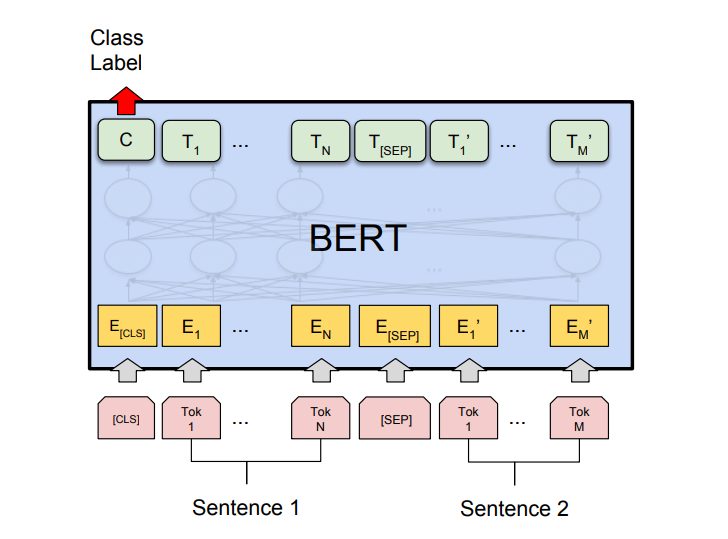 Token,记为[CLS],对应最终的Hidden State(即Transformer的输出)可以用来表征整个句子,用于下游的分类任务。 - 模型能够处理句间关系。为区别两个句子,用一个特殊标记符